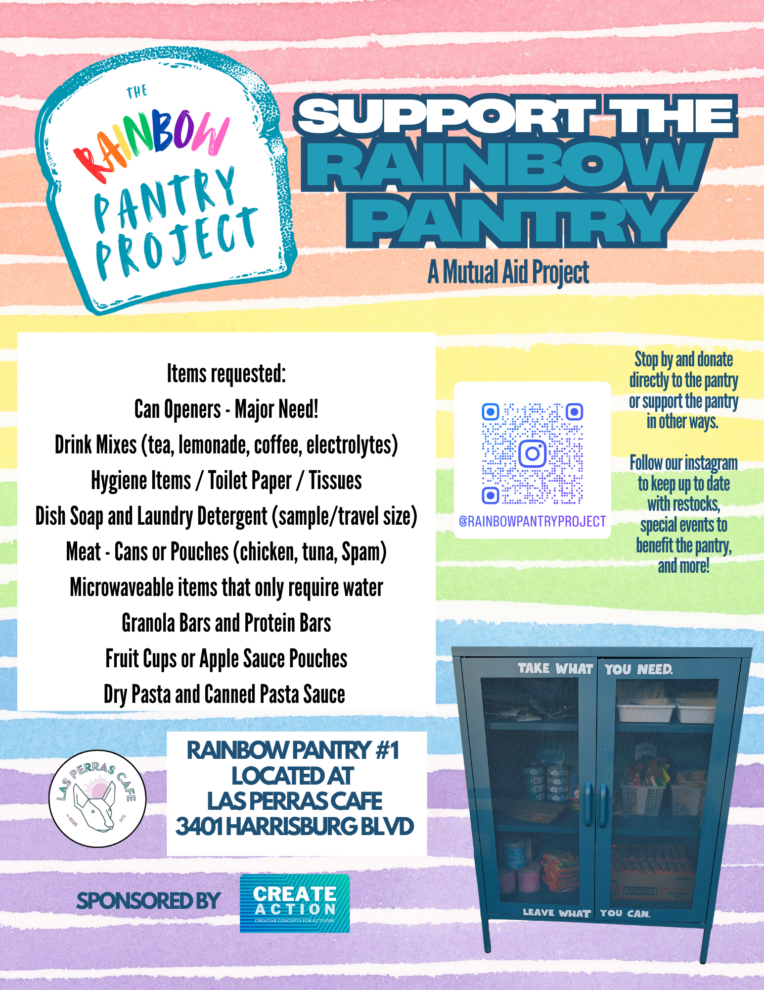 The Rainbow Pantry Project was born from a mission to bridge that gap through immediate, grassroots action. We tackle food insecurity by installing and maintaining Little Free Pantry boxes at community partner locations, providing 24/7 access to essentials for those who need them most.